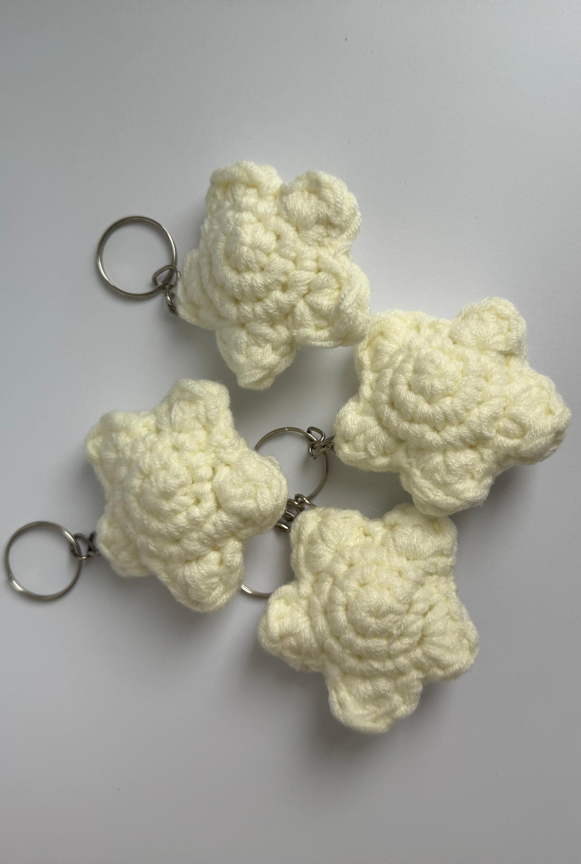 Each star is carefully crocheted with chunky yarn and finished with a sturdy keyring — making it both practical and irresistibly cute.
